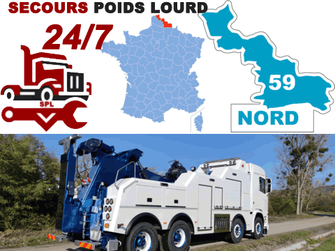 Nous intervenons pour le dépannage et le remorquage de poids lourds dans toutes les villes du département du Nord 59.